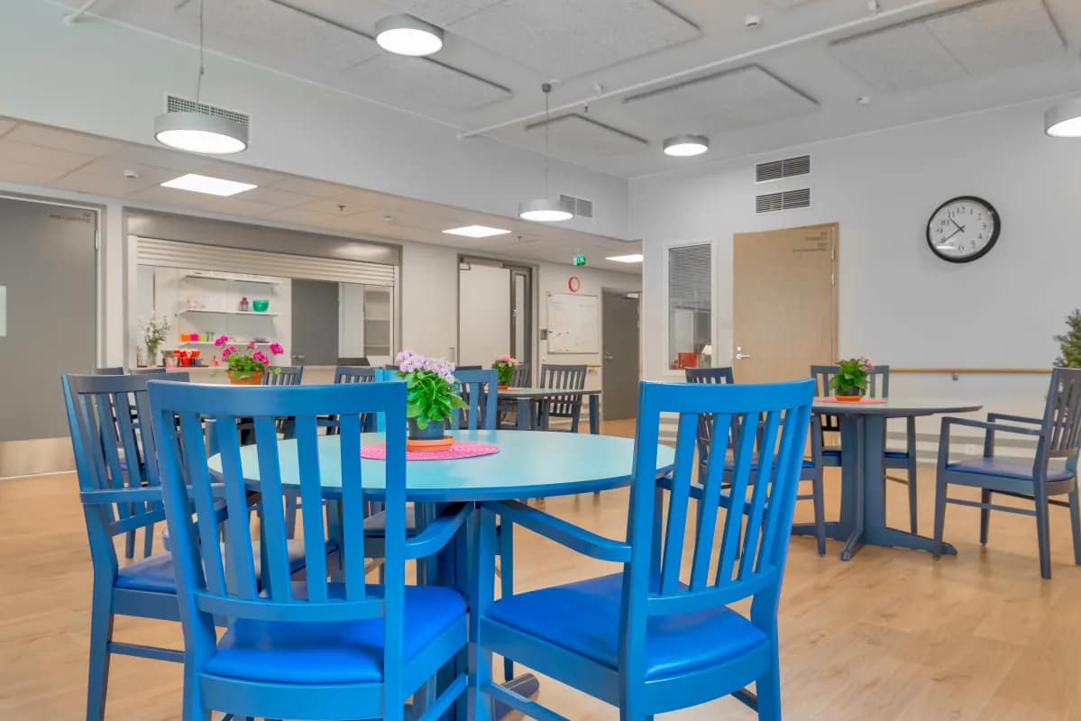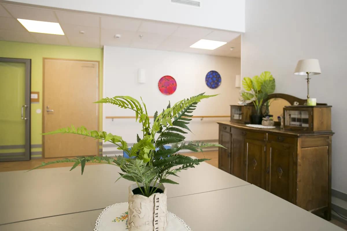 Varje invånare har ett eget tillgängligt rum med toalett och badrum samt tillgång till rymliga gemensamma utrymmen för måltider och samvaro. På rummet får man vara i lugn och ro och i de gemensamma utrymmena kan man umgås och tillbringa fritiden tillsammans. Invånarna har också tillgång till en trivsam gård.