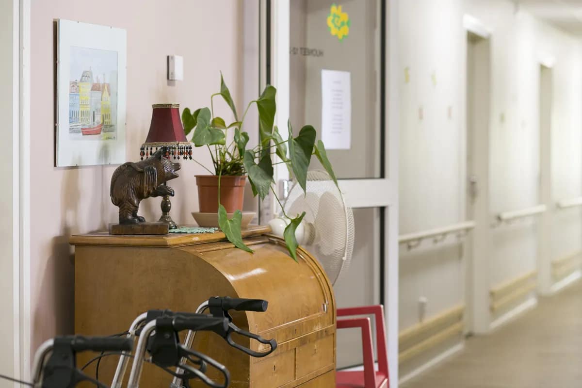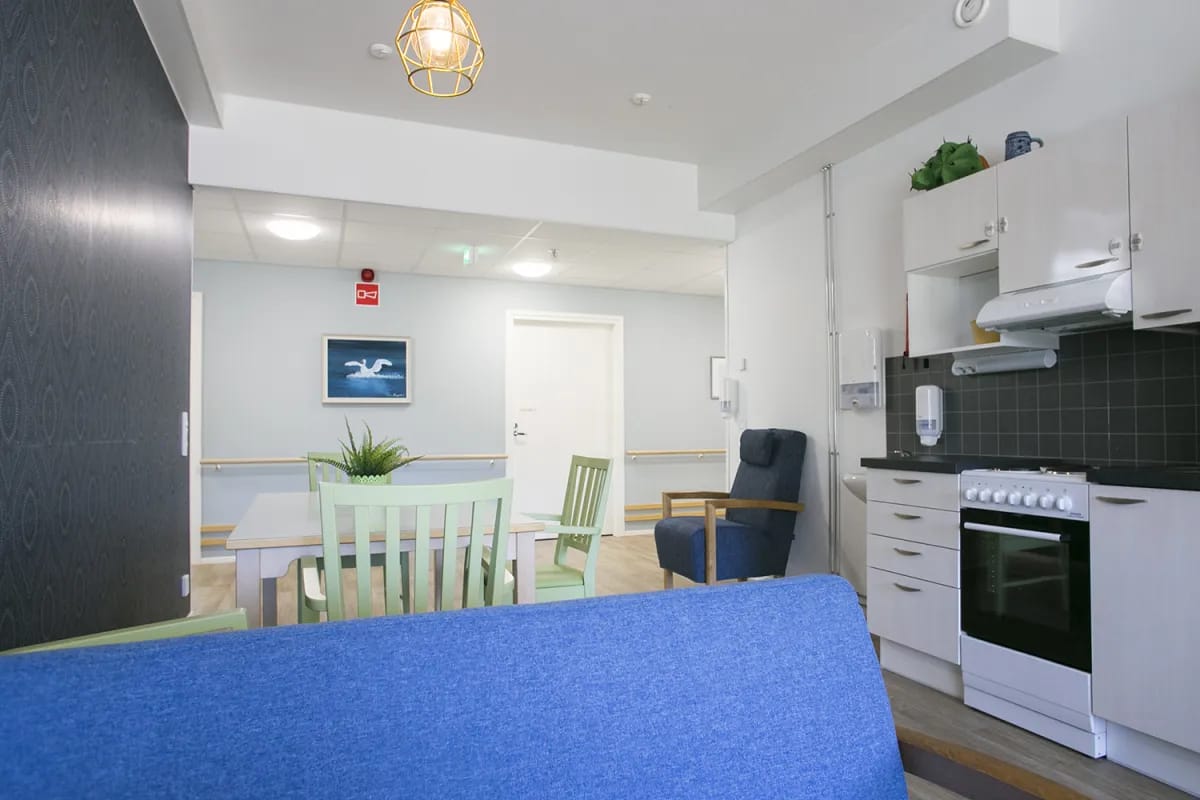 Varje invånare har ett eget rymligt rum med tillgänglig toalett och dusch. De gemensamma utrymmena för måltider och samvaro är trivsamt inredda med tanke på åldringarnas behov och trygghet. På den vackra gården dricker vi ofta kaffe och njuter av sköna sommardagar. Vårdhemmet ligger på ett parkaktigt bostadsområde, nära kommunala tjänster. Hemmets trivsamma och lugna omgivning är ett idealiskt ställe att bo på.
