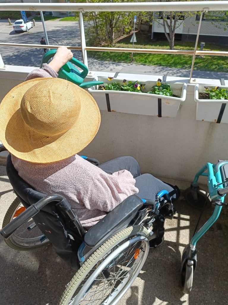Kauniista, lämpimästä perjantai päivästä parvekkeella nautittiin ja samalla kasteltiin pienet orvokkimme.