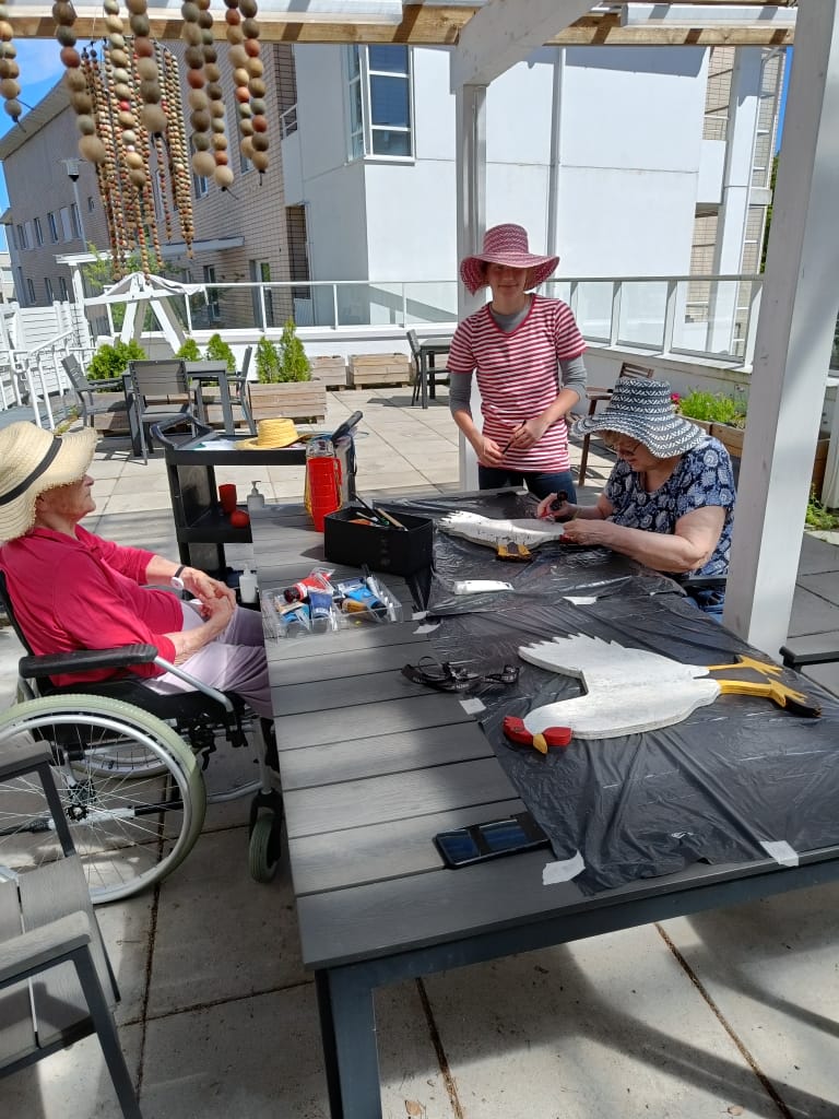 Hellepäivän puuhia pihalla katoksen alla.