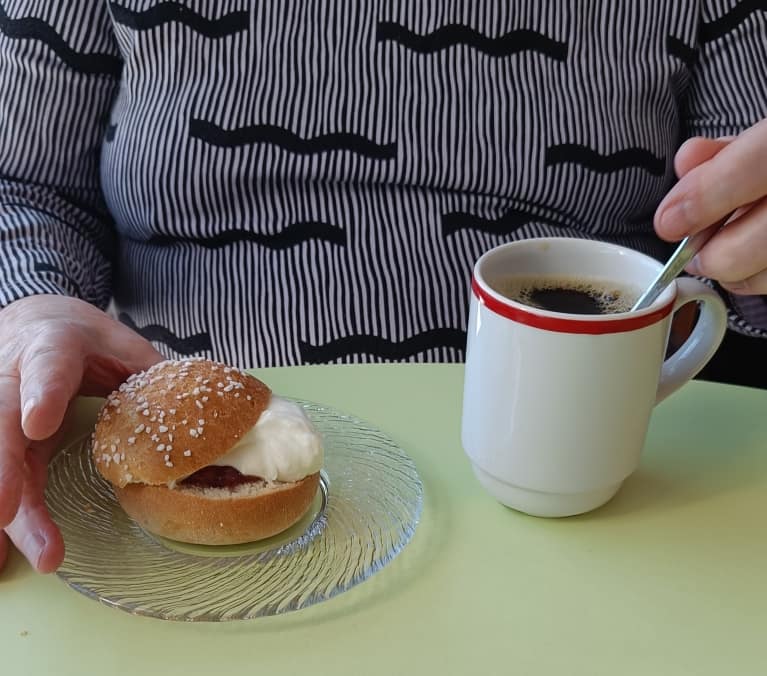 Vietimme laskiaistiistaita itse tehtyjen laskiaispullien kera päiväkahvien merkeissä.