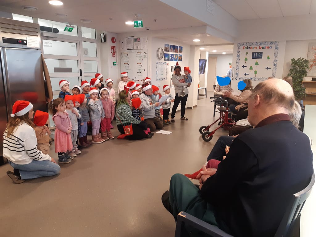 Päiväkotilapset tulivat osastolta. Laulettiin muutama joululaulu ja syötiin piparkakkuja . Asukkaat nauttivat kovasti.