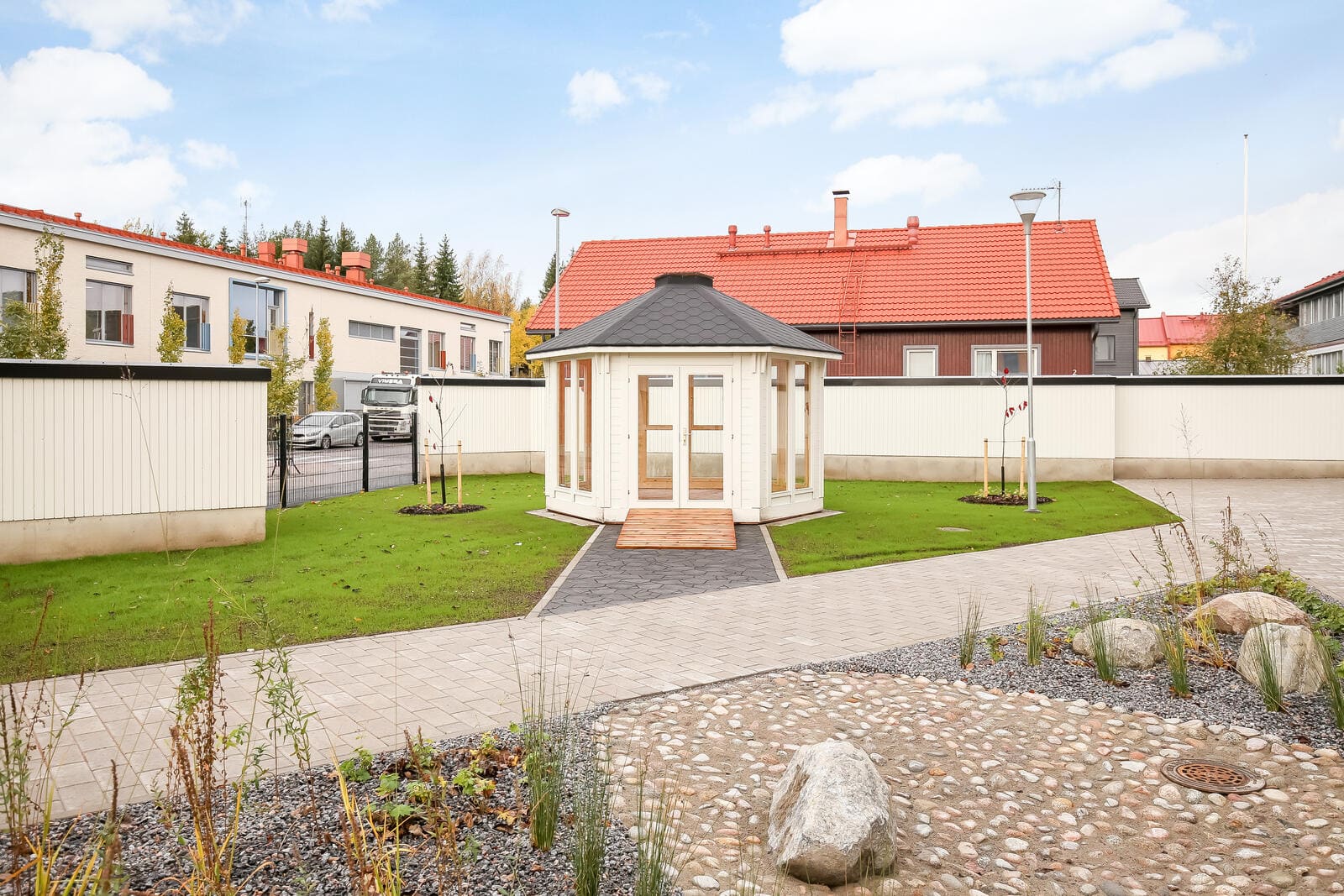 Asuinalueena Alppikylä on rauhallinen ja viihtyisä. Alppikylään on haettu tunnelmaa Keski-Euroopan kaupunkipientalojen rivistöistä. Kauniit ja värikkäät townhouse-tyylisiä taloja voi ihastella niin asukkaiden ikkunoista kuin yhteisiltä parvekkeilta. Hoivakodin läheltä löytyvät hyvät ulkoilureitit ja bussit kulkevat kätevästi Pakaasin läheisyydestä.