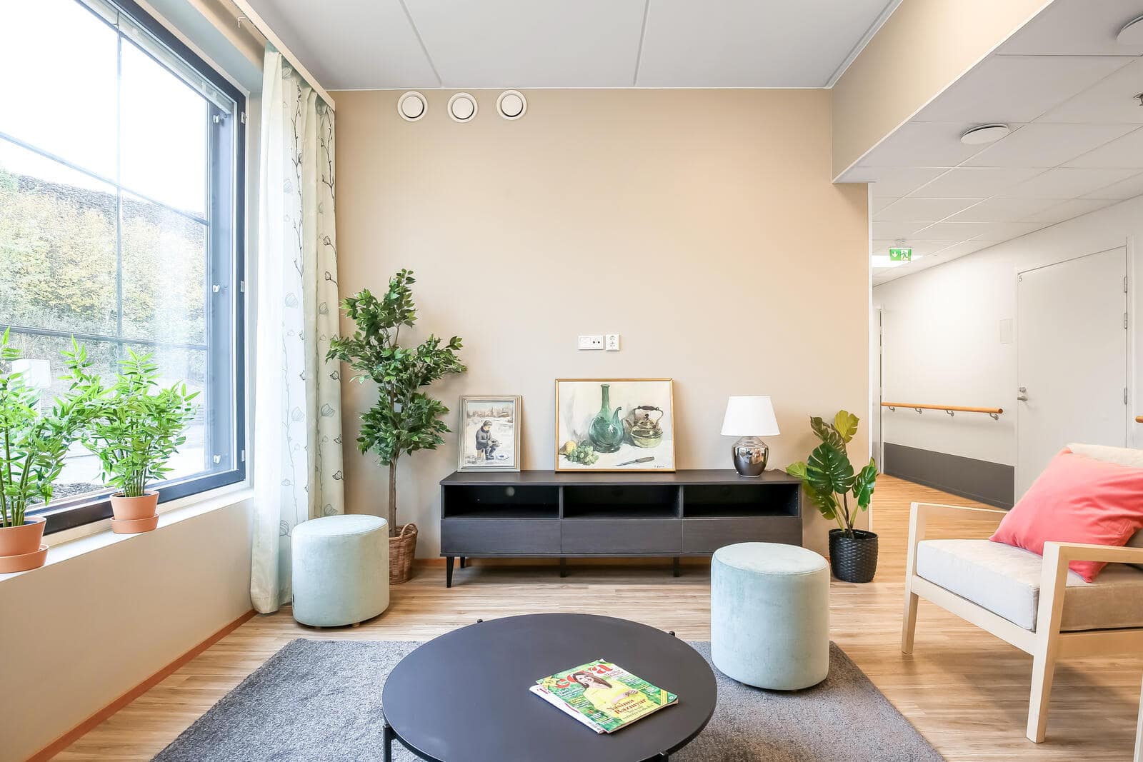 Kurkkaa miltä Hoivakoti Pakaasin yleistilat näyttävät.