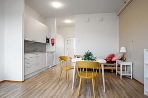 Jokaisella asukkaalla on käytössään oma, esteetön huone sekä wc-/kylpyhuone. Lisäksi kodissa on kolme tilavaa pariskuntahuonetta, joissa on jokaisessa on oma yhteinen kylpyhuone – nämä sopivat hyvin yhdessä asuville pareille. Yhteiset ruokailu- ja oleskelutilat ovat valoisia ja avaria, ja sisustusratkaisuissa korostuvat kodinomaisuus ja omatoimisuuden tukeminen. Asukkaiden iloksi käytössä ovat myös yksikön viihtyisä piha-alue ja parvekkeet.