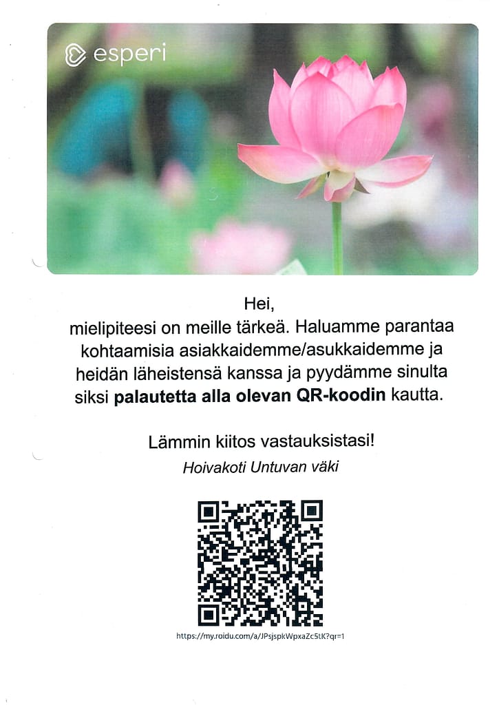 Saman QR-koodin löydät myös hoivakodin ilmoitustaululta.