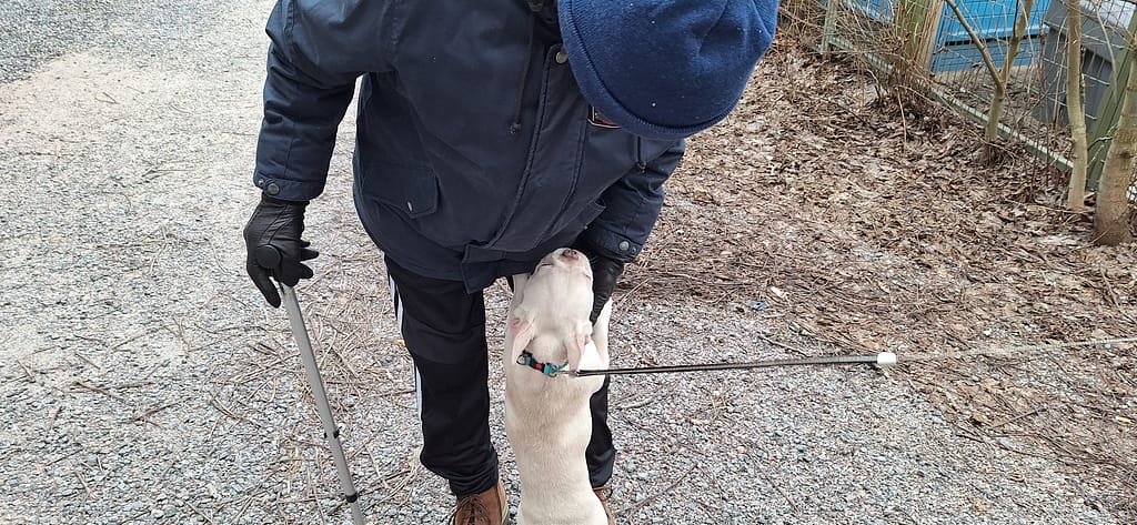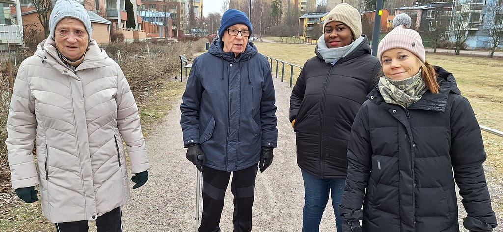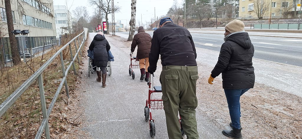 Kävely kohti Pikkuhuopalahden rantaa sai hymyt huulille. Oli kiva tunnelmoida tulevaa kevättä jo ennalta! Matkalla saatiin rapsutella koiranpentua.