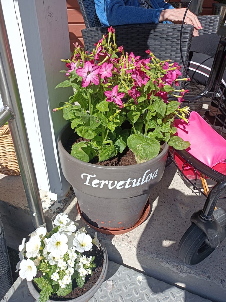 Viime viikolla saimme hoivakodin terassille myös kauniit kesäkukkaistutukset.