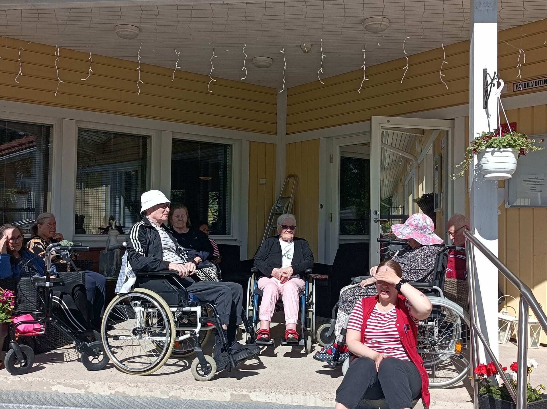 Hyvällä säällä on ilo ulkoillla. Viikonloppuna kaikki halukkaat pääsivät ulos hoivakodin pihalle. Nautittiin auringon paisteesta, raikkaasta juomasta ja jäätelöstä.