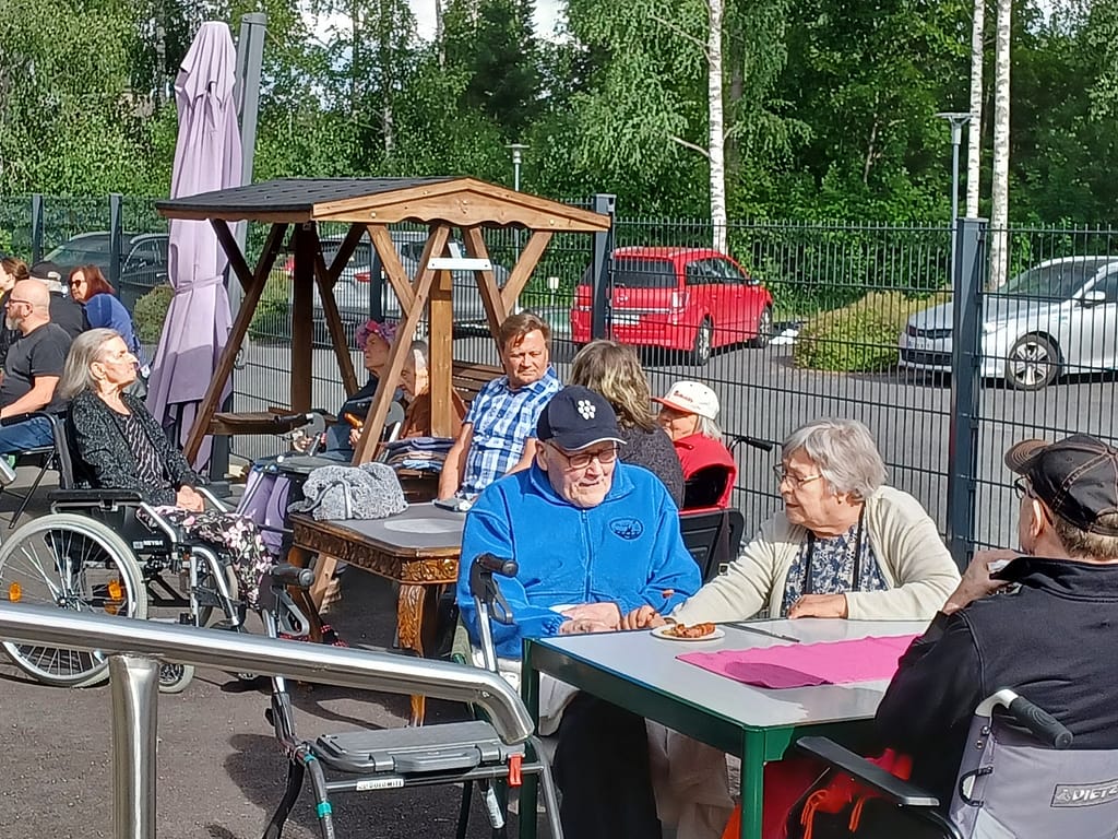 Vietimme 19.6. kesäiset grillijuhlat. Tarjolla oli makkaraa sekä pullakahvit. Sääkin suosi meitä, vaikka sadepilviä olikin uhkaavasti ajoittain näkyvissä. Omaisia ja läheisiä pääsi suuri joukko paikalle ja koko piha oli täynnä mukavaa puheen sorinaa.