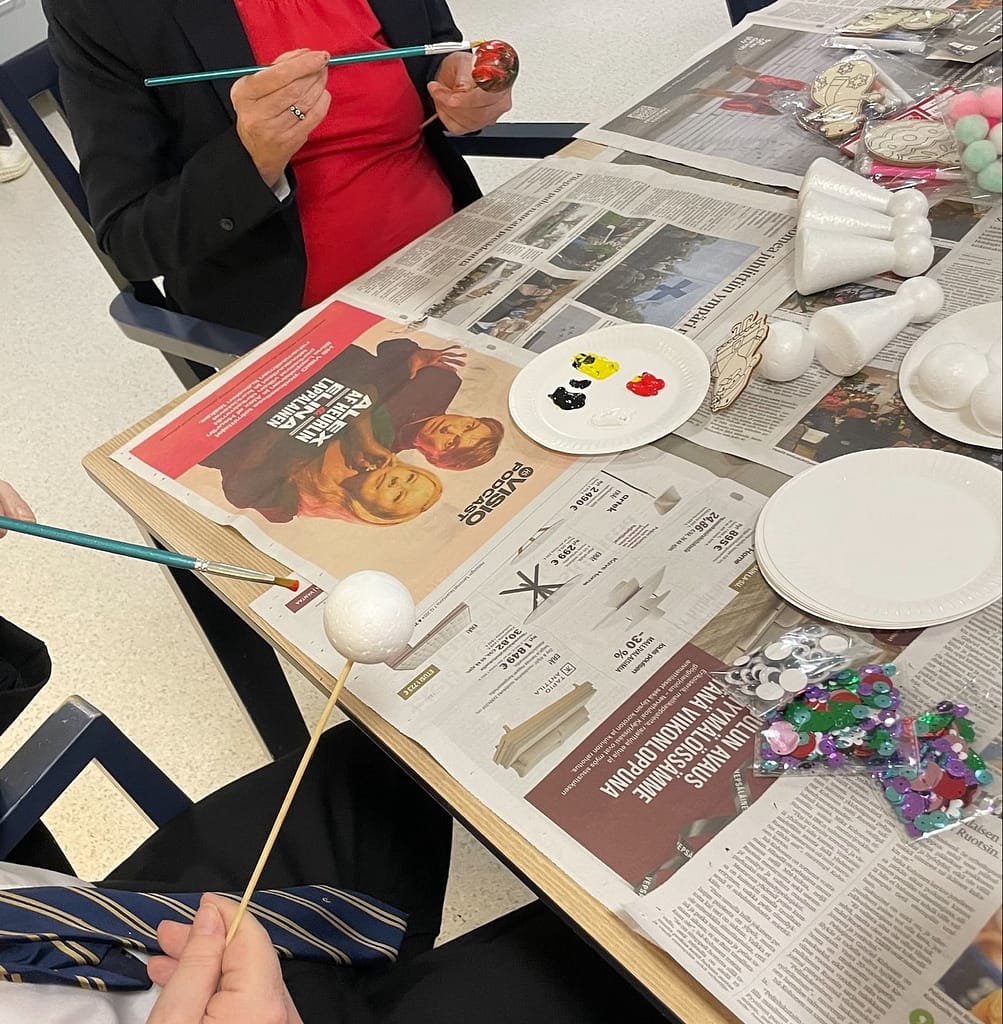 Pikkujouluihin oli kutsuttu myös läheisiä ja ohjelmassa meillä olikin yhteistä askartelua sekä joululauluja soittimien kera.