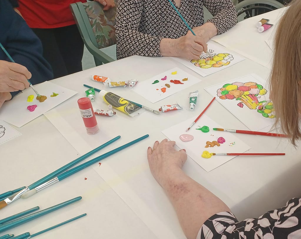 Kivipuiston asukkaat tarttuivat siveltimiin ja loivat syksyn sävyjä täynnä olevia maalauksia. Yhteinen maalaushetki toi lämpöä ja naurua syksyiseen päivään.