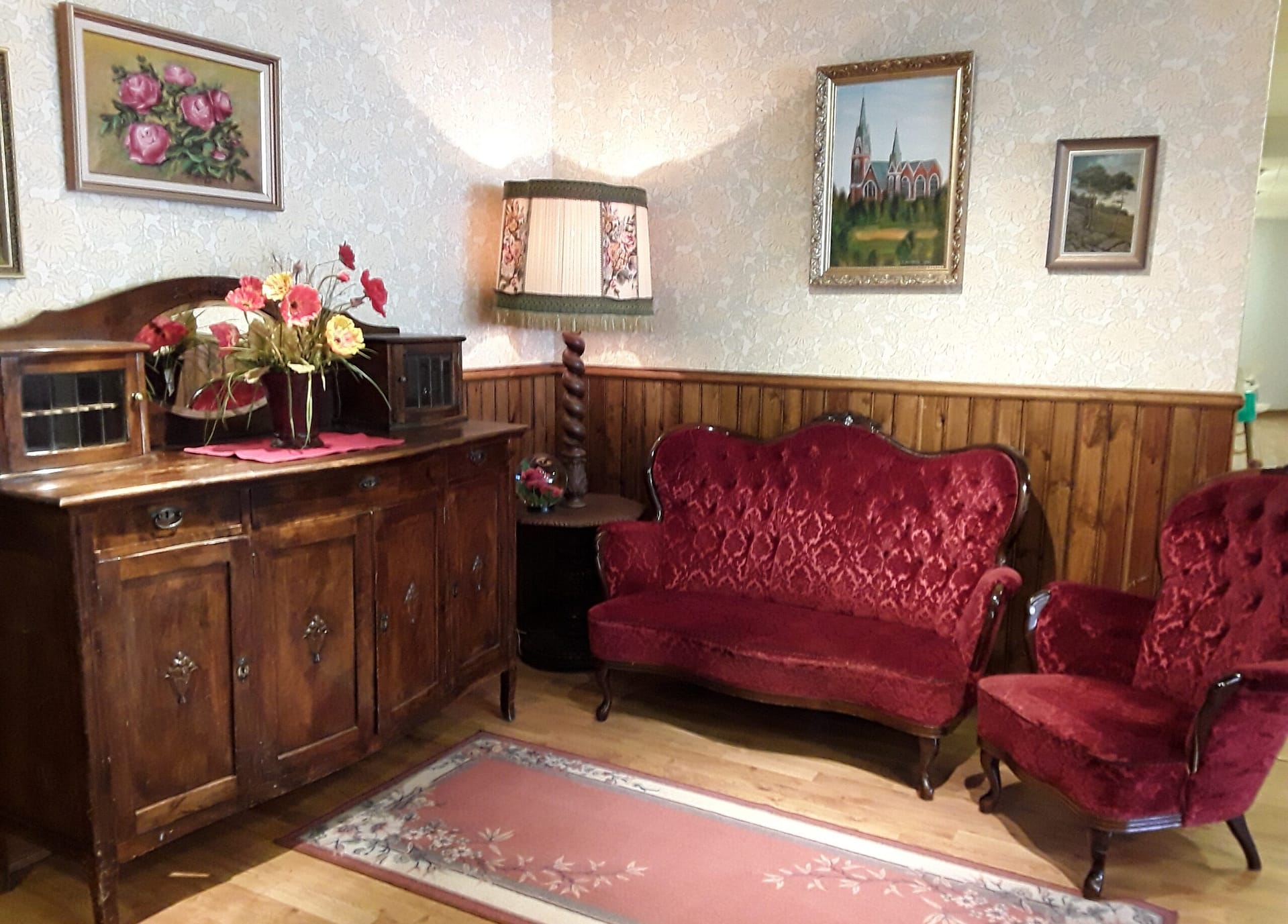 Kukkivat pelargoniat ja muut viherkasvit, pitsiverhot sekä seinällä raksuttava kello tekevät kodista kodin. Asukkaat saavat halutessaan sisustaa omat huoneensa haluamillaan omilla tutuilla tavaroilla.