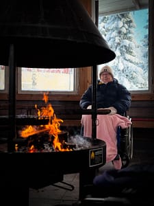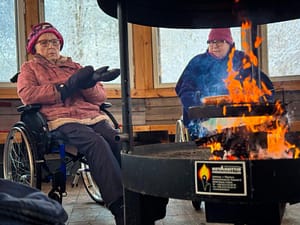 Yhteinen talvihetki kodassa: makkaranpaistoa, rauhallinen ympäristö ja merkityksellistä yhdessäoloa.