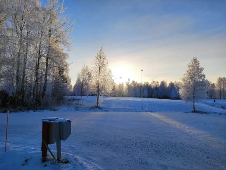 Kiekerön ympäristö on sunnuntaiaamuna kuin satukirjasta. Pakkasta on 8 astetta ja auringonvalo kimaltelee huurteisissa puissa.