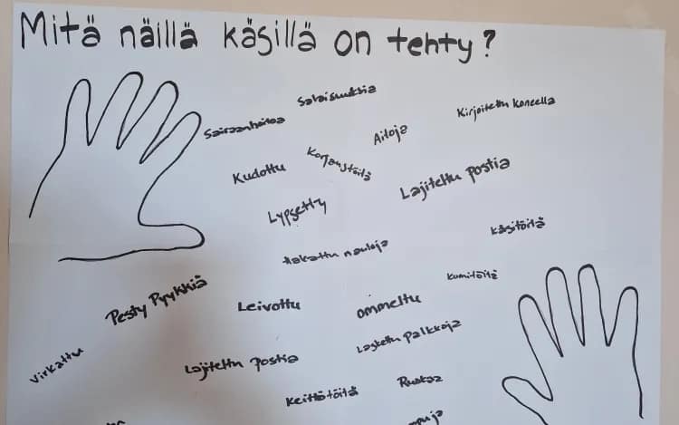 Kokosimme asukkaamme pöydän ääreen ja keskustelimme siitä ”mitä näillä käsillä on tehty?”