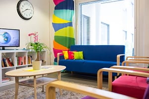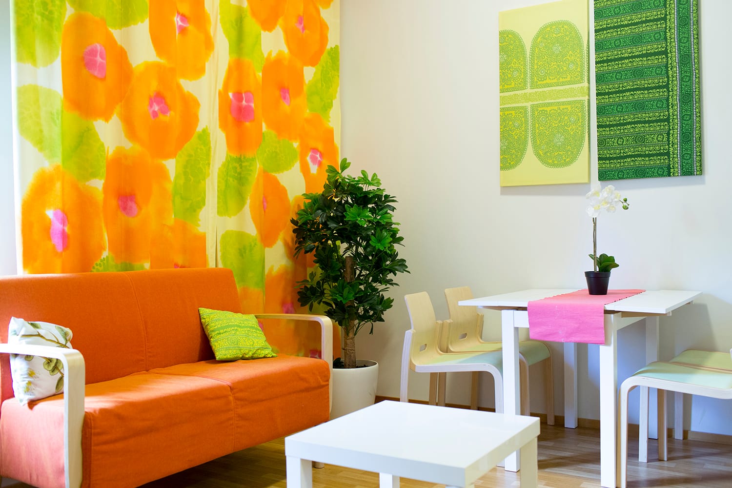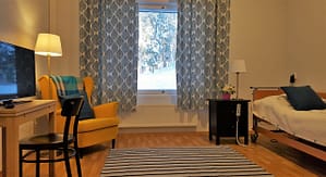 Asukashuoneet ovat yhden hengen tilavia huoneita, joissa jokaisessa on wc/kylpyhuone. Huoneet ovat kooltaan 22,5 m2. Asukkaat saavat sisustaa huoneensa omilla tutuilla huonekaluillaan ja tavaroillaan. Yhteisestä oleskelutilasta pääsee vapaasti ulkoilemaan turvalliselle ja viihtyisälle pihamaalle. Talon toisessa kerroksessa on iso ja valoisa parveke, josta näkee naapurin päiväkodin pihalle.