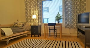 Asukashuoneet ovat yhden hengen tilavia huoneita, joissa jokaisessa on wc/kylpyhuone. Huoneet ovat kooltaan 22,5 m2. Asukkaat saavat sisustaa huoneensa omilla tutuilla huonekaluillaan ja tavaroillaan. Yhteisestä oleskelutilasta pääsee vapaasti ulkoilemaan turvalliselle ja viihtyisälle pihamaalle. Talon toisessa kerroksessa on iso ja valoisa parveke, josta näkee naapurin päiväkodin pihalle.