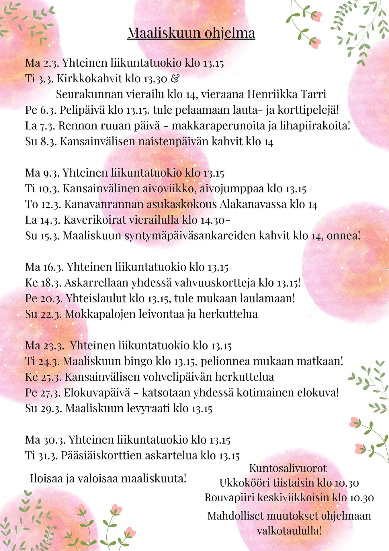 Meillä on vielä vapaita paikkoja. Soita ja kysy lisää palveluistamme! Katso yhteystiedot täältä.