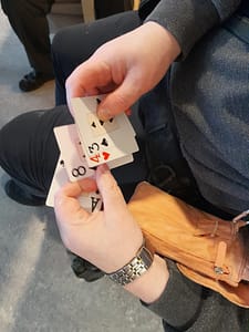 Vietämme asukkaiden kanssa yhteistä aikaa mm. korttia pelailemalla.