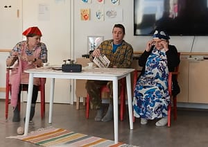 Pienryhmä kolmiapilat kävivät esiintymässä meille. Saimme kuulla 1950-60 luvun tarinoita pirtistä.