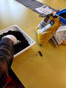 Olemme aloittanneet kevät- istutukset. Asukkaat pääsivät auttamaan ja laittamaan sormensa multaan.