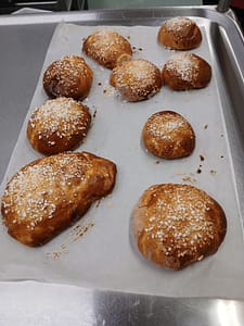 Pullan tuoksuinen päivä. Asukkaat saivat herkutella illalla itse leivotuilla pullilla, jotka saivat hymyn huulille.