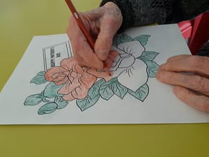 Värittelimme asukkaiden kanssa tulevan kesän kukka loistoa..