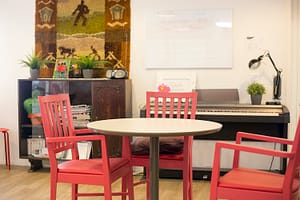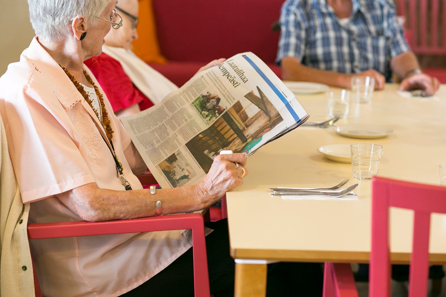 Ruokasali sekä kaksi olohuonetta tarjoavat kattavat tilat yhteiselle toiminnalle. Tilava ja esteetön sauna lämmitetään vähintään kerran viikossa. Erilaisia apuvälineitä käyttäen mahdollistetaan huonompikuntoisemmankin saunominen. Rauhallinen pihapiiri luo puolestaan miellyttävät puitteet ulkoilulle ja aidattu piha on turvallinen myös muistisairaille.