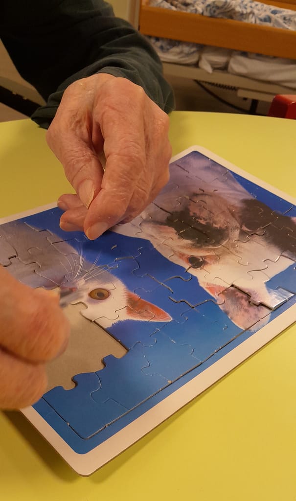 Tänään viriketuokiossa tehtiin erilaisia palapelejä. Palapelien teko on hyvä tapa tarjota aivoille mielekästä puuhaa. Palapelien teko parantaa myös käsien koordinaatiota sekä kehittää kokonaisuuksien hahmottamista.