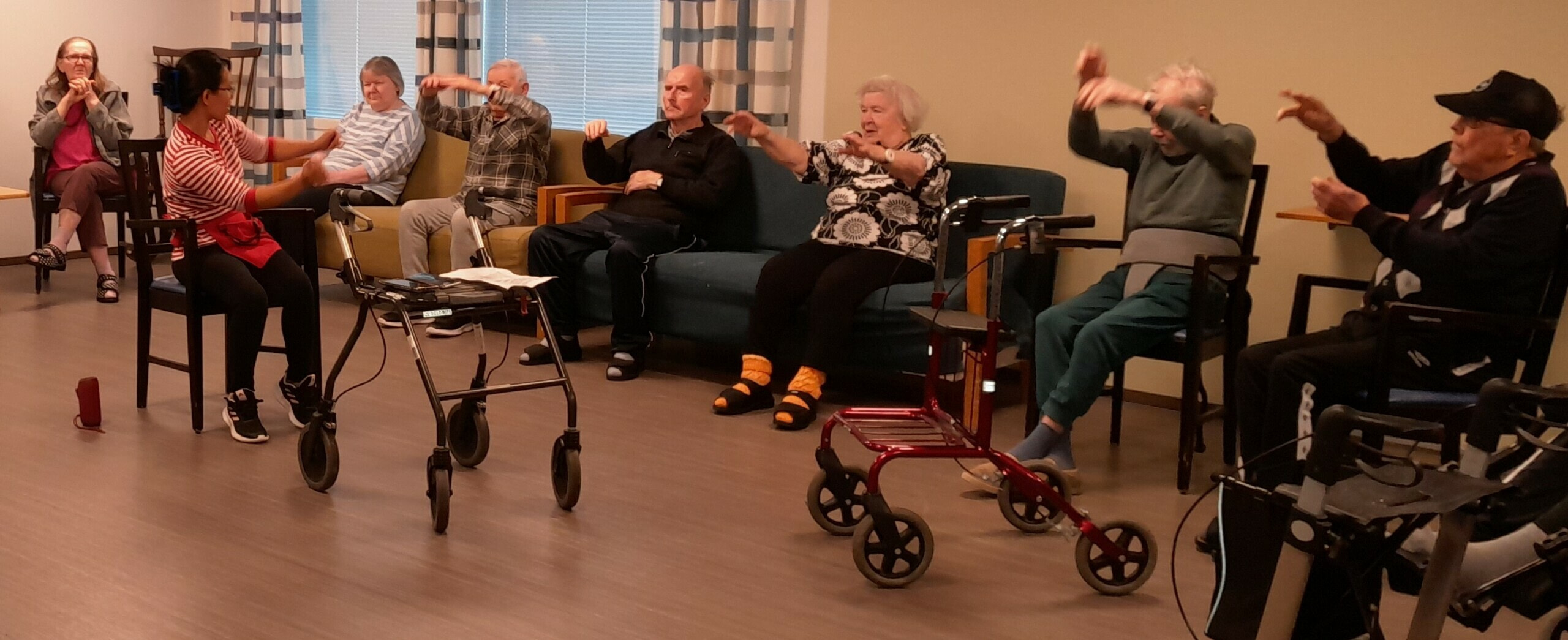 Tänään jumppailtiin taas musiikin tahtiin oikein isolla porukalla. Lopuksi tanssahdeltiin myös parit valssit. ☺