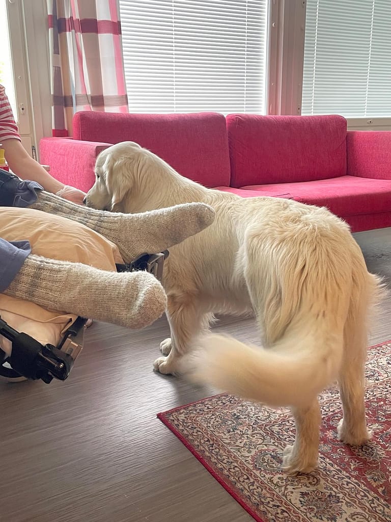 Tahvo kävi jälleen moikkaamassa asukkaita ja pääsi monien rapsuteltavaksi. Kaikenlaiset eläinystävät ovat meille aina tervetulleita. ☺