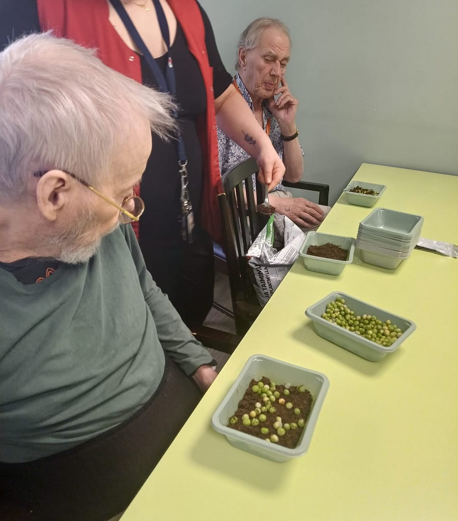 Pitkästä aikaa asukkaat pääsivät kylvöpuuhiin kun tänään aloitettiin yhdessä versojen viljely. Asukkaat saivat tehdä itselleen omat versoastiat, jotka lähtivät ikkunoiden eteen odottelemaan auringon säteitä kasvaakseen oikein komeiksi. Niiden nopeaa itämistä onkin hauska seurata. ☺︎