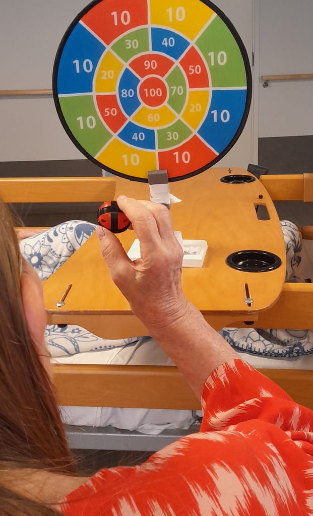 Tämä päivä puuhailtiin sisällä asukkaiden kanssa kun ulkona jyrisi ukkonen ja vettäkin satoi ihan kiitettävästi. Yhtenä päivän aktiviteettina oli tarkkuusheitto, mistä saatiinkin aikaiseksi pieni kisa.