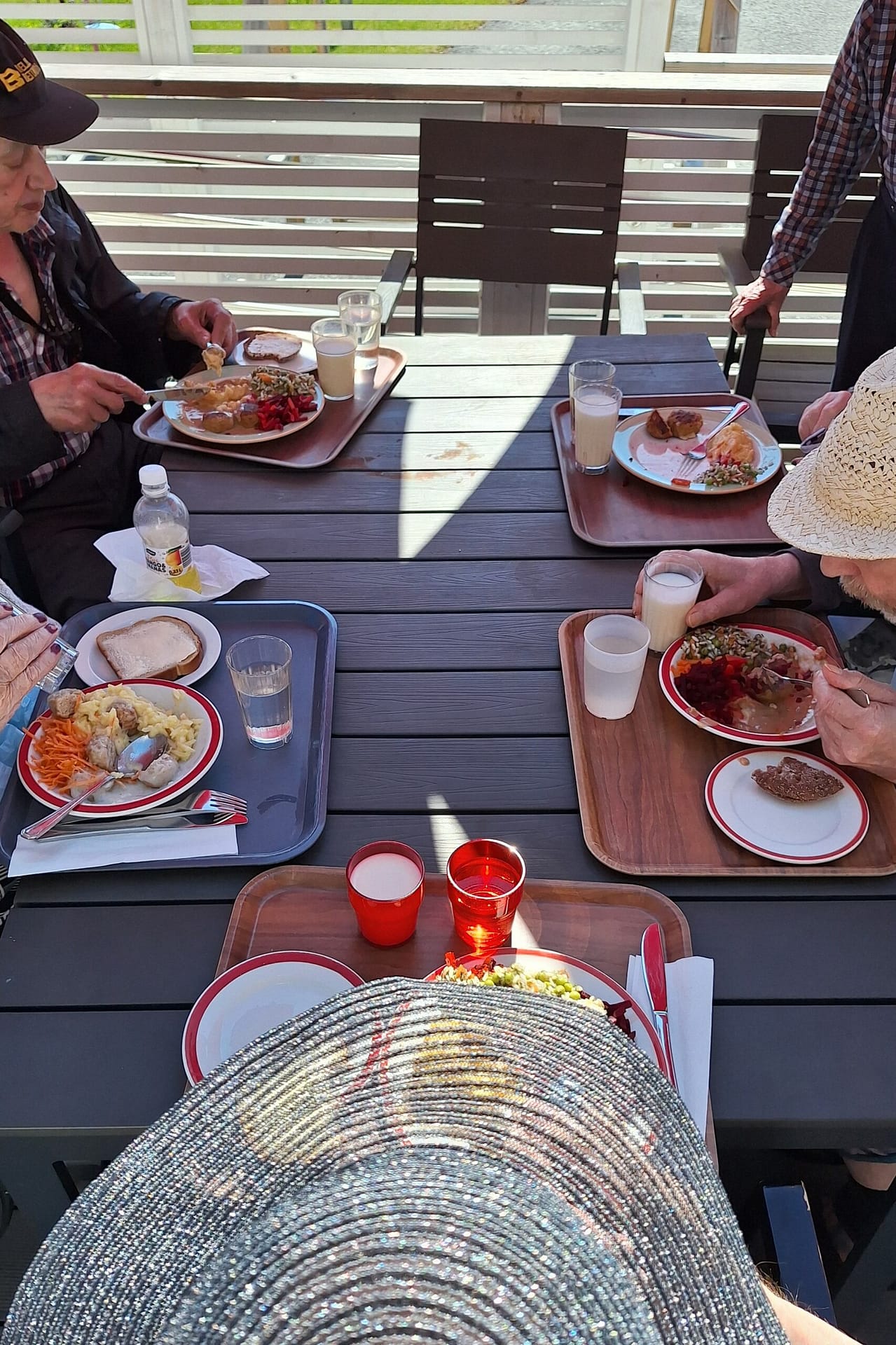 Tämä päivä viihdyttiin jälleen ulkosalla auringon lämmöstä nauttien. Nyt saa alkaa olemaan jo tarkkana, ettei istuksi liian kauan auringon paahteessa! Tänään pelailtiin bingoa ja nautittiin terassilounaasta. ☺