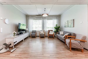 Orvokissa haluamme huomioida sekä asukkaat että heidän läheisensä ja vahvistaa yhteistä yhteenkuuluvuuden tunnetta. Siksi käytössämme on Mummola-huone, jossa voi viettää mukavia hetkiä yhdessä. Huoneessa on myös mahdollisuus keittää kahvia ja teetä.