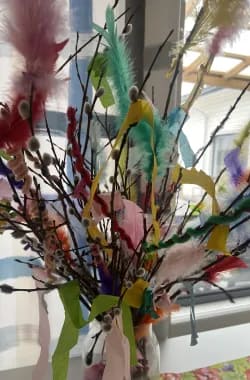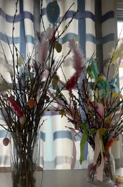 Pääsiäisen viettoa ja laittoa Aapossa. Koristelua ja askartelua asukkaiden kanssa.