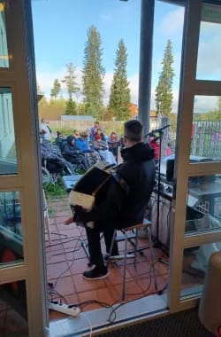 Iäkkäiden ukoilupäivänä syksyisestä ilmasta ja musiikista oli nauttimassa lähes koko talon väki. Ilma suosi ja kylmäkään ei tullut, kun musiikki meni mukavasti jalan alle