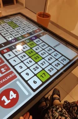 Bingoa aivan uudella tavalla. Moni asukkaamme onkin bingoveteraani, mutta pelilauta kosketusnäyttöineen oli uutta. Pelaaminen kuitenkin sujuu varsin mukavasti. Oppia ikä kaikki!