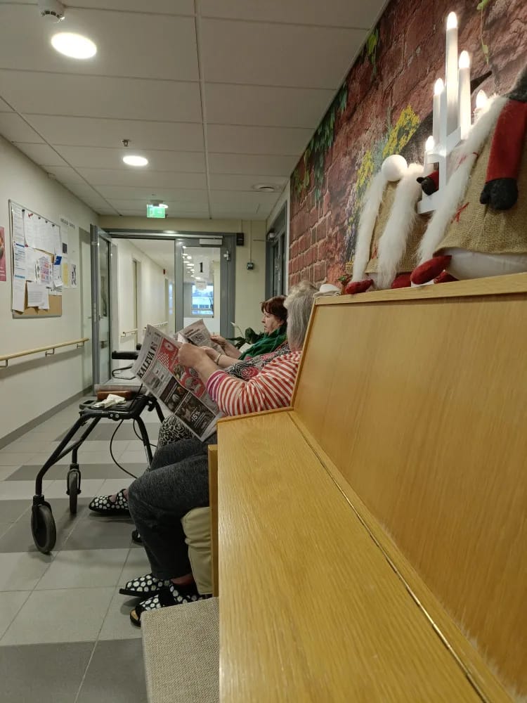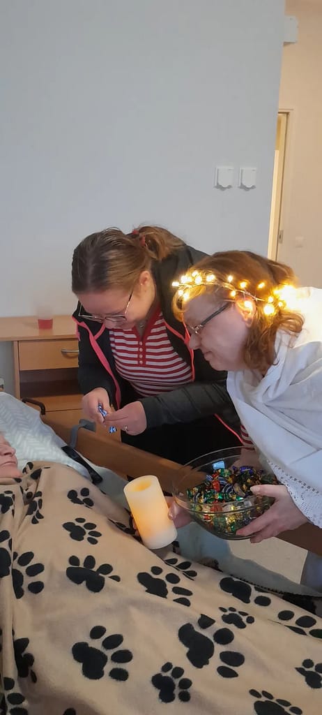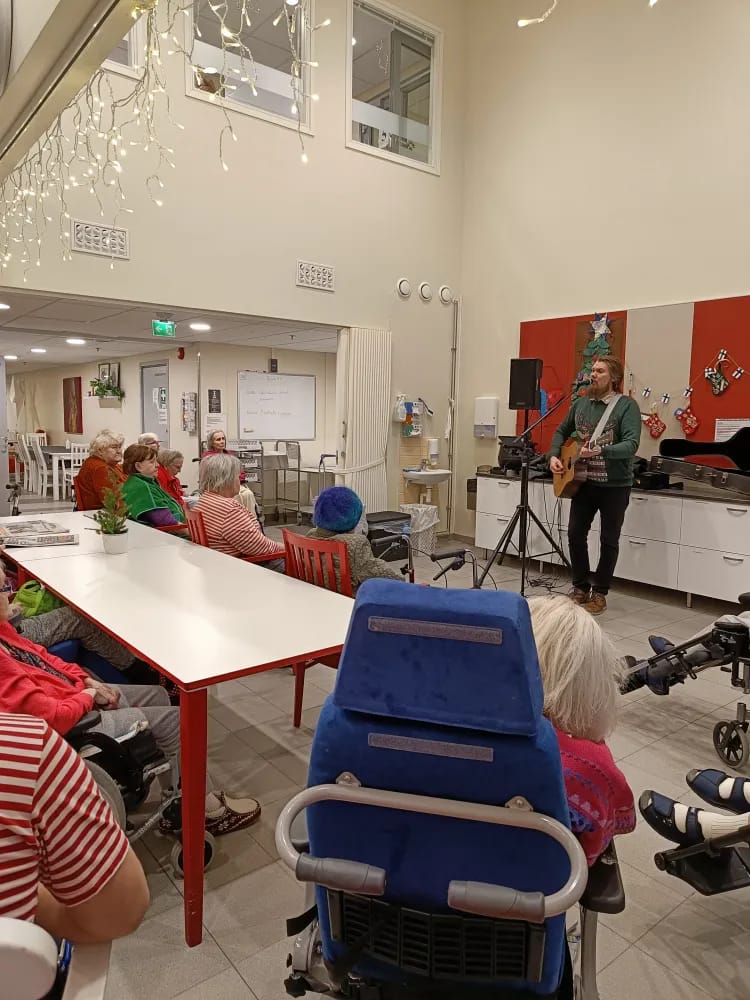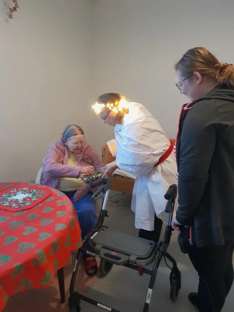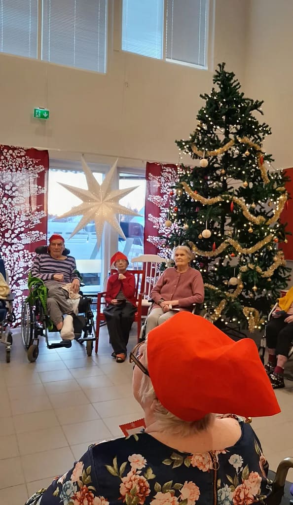 Ameliassa joulun odotukseen on mahtunut monia mukavia hetkiä. Olemme viettäneet talon asukkaiden puurojuhlaa, jossa tiernapojat kävivät esiintymässä. Myös laulaja Jukka Lamminen kävi tänään viihdyttämässä asukkaita. Lucian päivänä Anneli toi valoa talven pimeyteen. Ensiviikon esiintyjä vieraiksi saapuvat lapset laulamaan joululauluja ja saapa nähdä tuleeko se pukkikin käymään vierailulla.