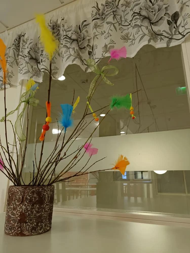 Pirjo on tehnyt asukkaiden kanssa kevätistutuksia. Multaruukkuja löytyy siis ikkunalaudalta odottamasta aamun auringonsäteitä, ihana kevään merkki.