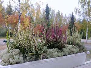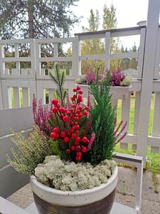 Kontiolan kodin piha sai koristeeksi kauniita syyskukkia ja metsän koristeita.