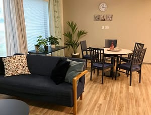 Jokaisen asukkaan käytössä on oma tilava huone, esteetön wc-/kylpyhuone sekä yhteiskäytössä olevat viihtyisät ruokailu- ja oleskelutilat. Tilaratkaisut on suunniteltu ikäihmisten tarpeiden näkökulmasta, turvallisuutta ja omatoimisuuden tukemista ajatellen. Koti sijatsee rauhallisella asuinalueella Pietarsaaressa.