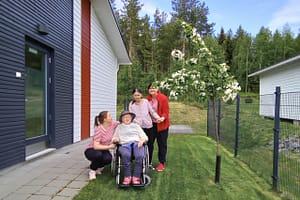 Jokaisen asukkaan käytössä on oma tilava huone, invamitoitettu wc-/kylpyhuone, yhteiskäytössä olevat viihtyisät ruokailu- ja oleskelutilat sekä piha-alue. Turvallisella piha-alueella ulkoillaan ja nautitaan yhteisistä hetkistä. Tilat on suunniteltu ikäihmisten tarpeiden näkökulmasta, turvallisuutta ja kodinomaisuutta silmälläpitäen.
