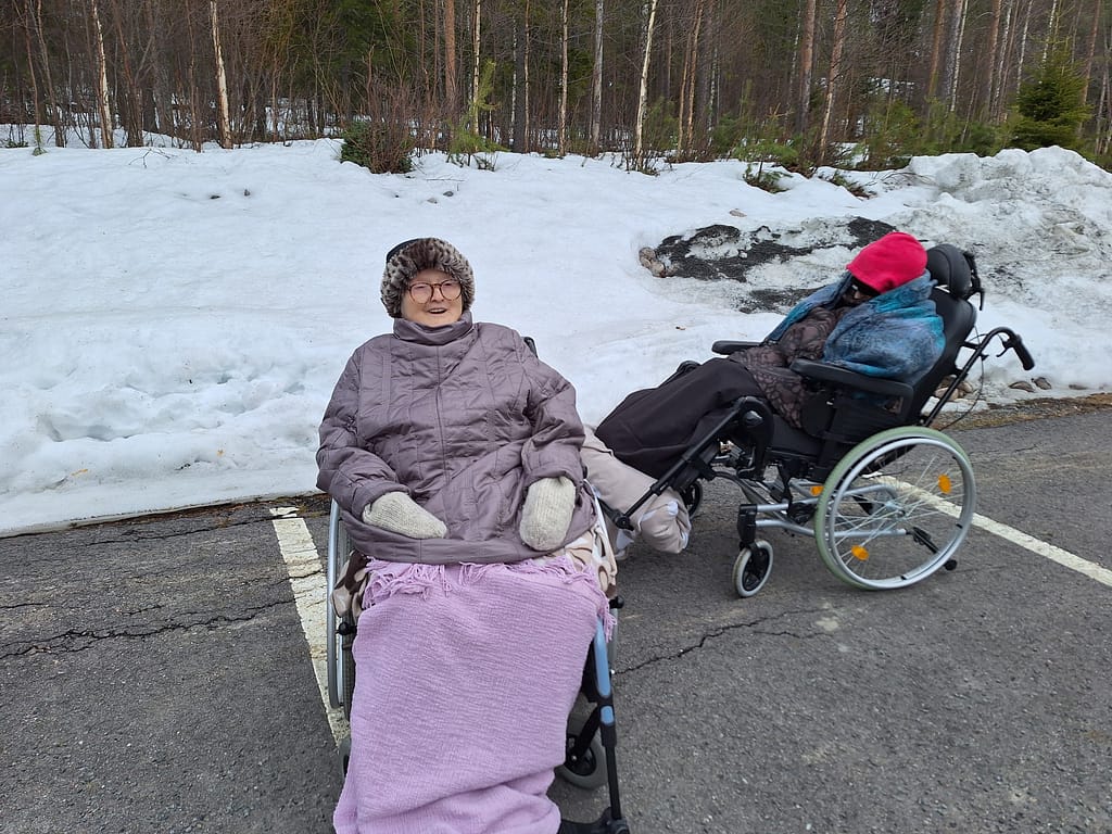 Täällä pohjoisessakin alkaa pikkuhiljaa olemaan keväiset tunnelmat ja vappuakin tietysti juhlittiin alkuviikosta. Sään salliessa on myös ulkoiltu ja sisätiloissa touhuttu kaikenlaista, mm. jumpattu ja päivätanssitkin järjestimme eräänä päivänä. Takapihalla on vielä jonkin verran lunta, mutta kunhan lumet sulaa, niin pääsemme taas hyödyntämään sitäkin kunnolla ulkoiluun.