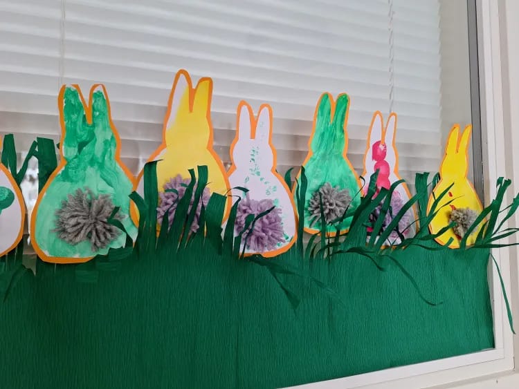 Pääsiäiseksi askartelimme pupuja, jotka nyt koristavat toimiston ikkunoita. Sunnuntaina meillä kävi myös yksi suloinen virpoja 🙂 Pääsiäisessä odotamme eniten mämmiä kermalla ja sitä, että olisi leppoisat ulkoilusäät.