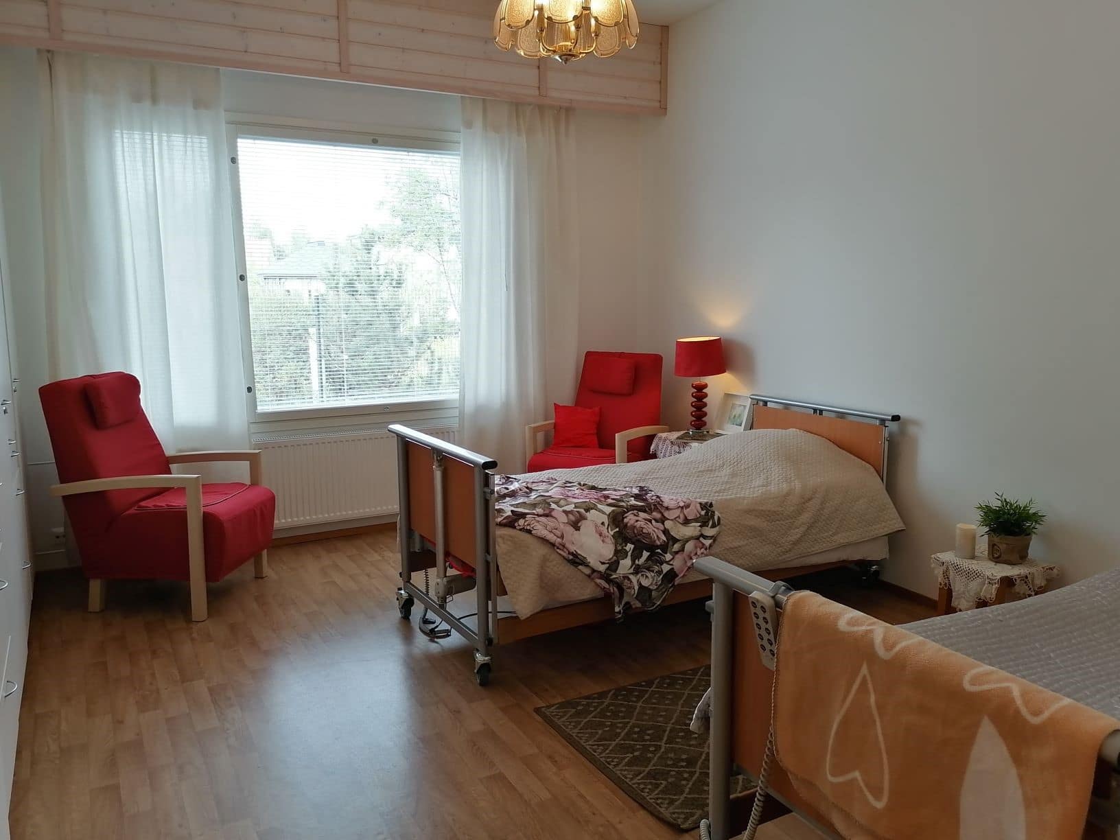 Jokaisen asukkaan käytössä on tilava huone, invamitoitettu wc-/kylpyhuone, yhteiset viihtyisät ruokailu- ja oleskelutilat sekä turvallinen piha-alue. Asukkaat saavat sisustaa oman huoneen omilla tutuilla ja tärkeillä huonekaluilla ja tavaroilla. Yhteiset tilat ovat viihtyisät ja niiden sisustuksessa on huomioitu ikäihmisten omatoimisuuden tukeminen. Kesäisin turvalliselle sisäpihalle on vapaa pääsy esteettömästi suoraan yhteistiloista. Pihalla oleva huvimaja on viihtyisä ja mieluisa ajanviettopaikka.