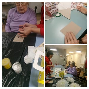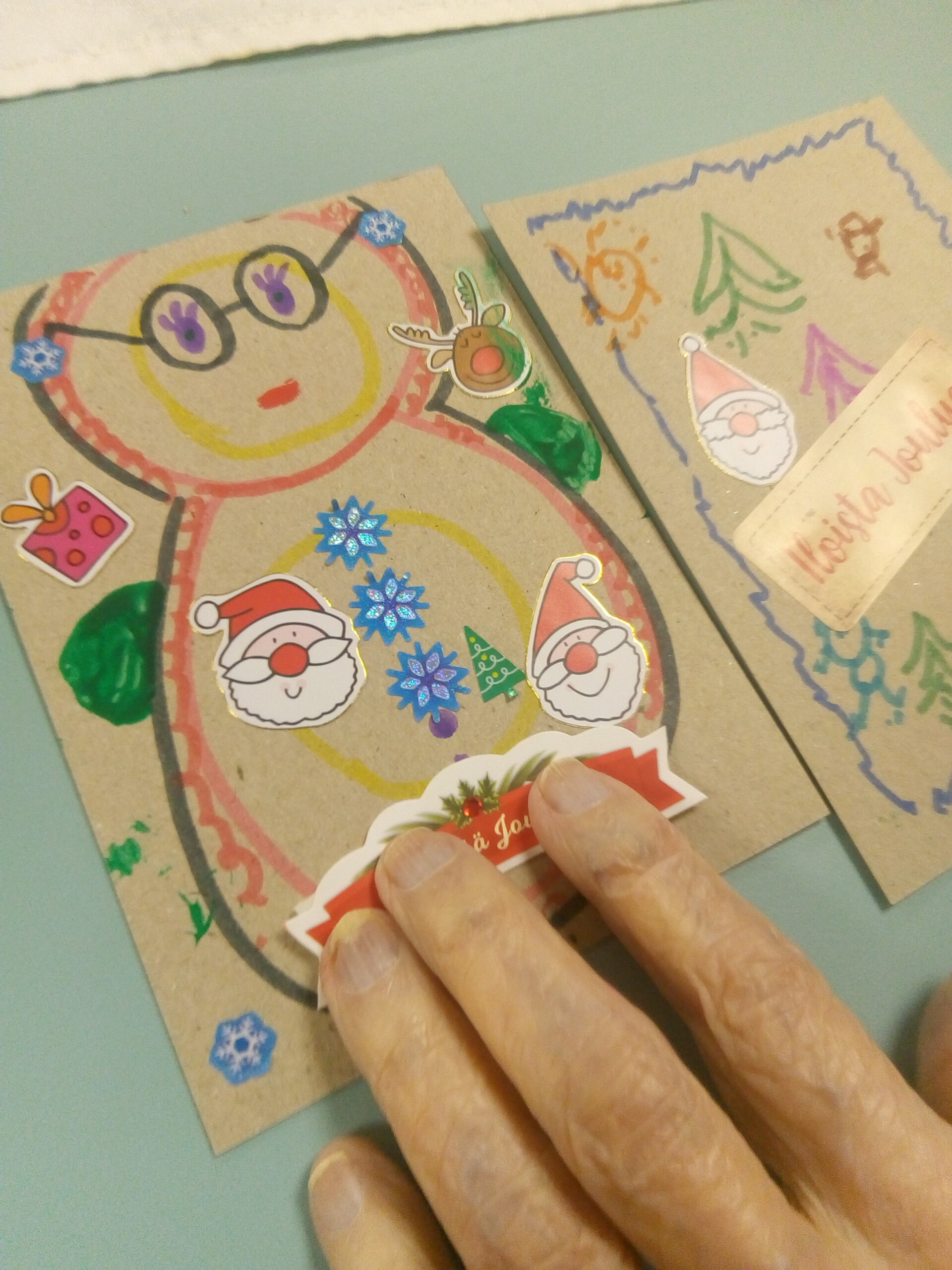 Tänään askartelimme asukkaidemme kanssa joulukortteja omaisille. Jokainen asukas sai halutessaan askarrella oman kortin läheiselleen.