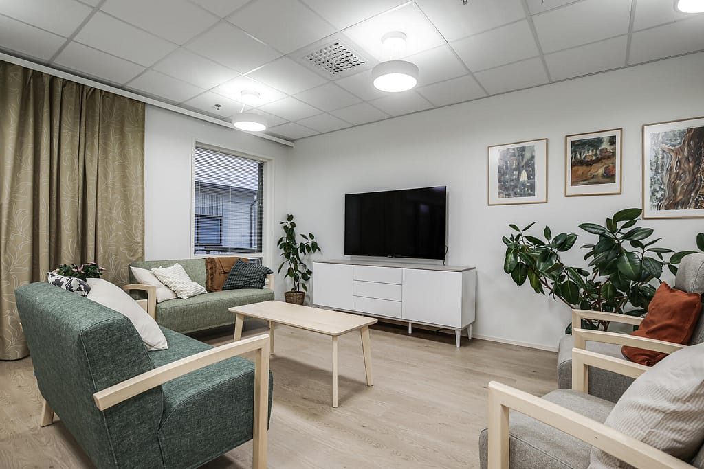 Mielenterveyskuntoutujien kodeissamme asukkaalla on oma asuinhuone. Sen lisäksi kodissa on yhteisiä tiloja, joissa järjestetään toipumista edistävää toimintaa. Olemme huomioineet asiakasryhmän tarpeet ja tehneet kodeistamme mahdollisimman viihtyisiä kodinomaisuutta unohtamatta.