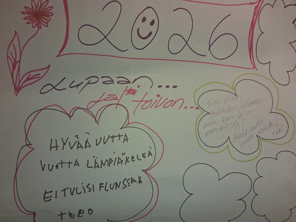 Otimme uuden vuoden vastaan rakettien räiskyessä. Emme tosin ihan puolille öin jaksaneet valvoa.